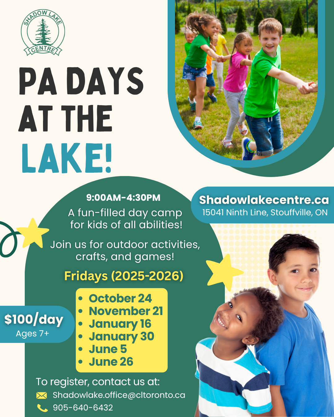 👉 Register now at by contacting us at shadowlake.office@cltoronto.ca or 905-640-6432.