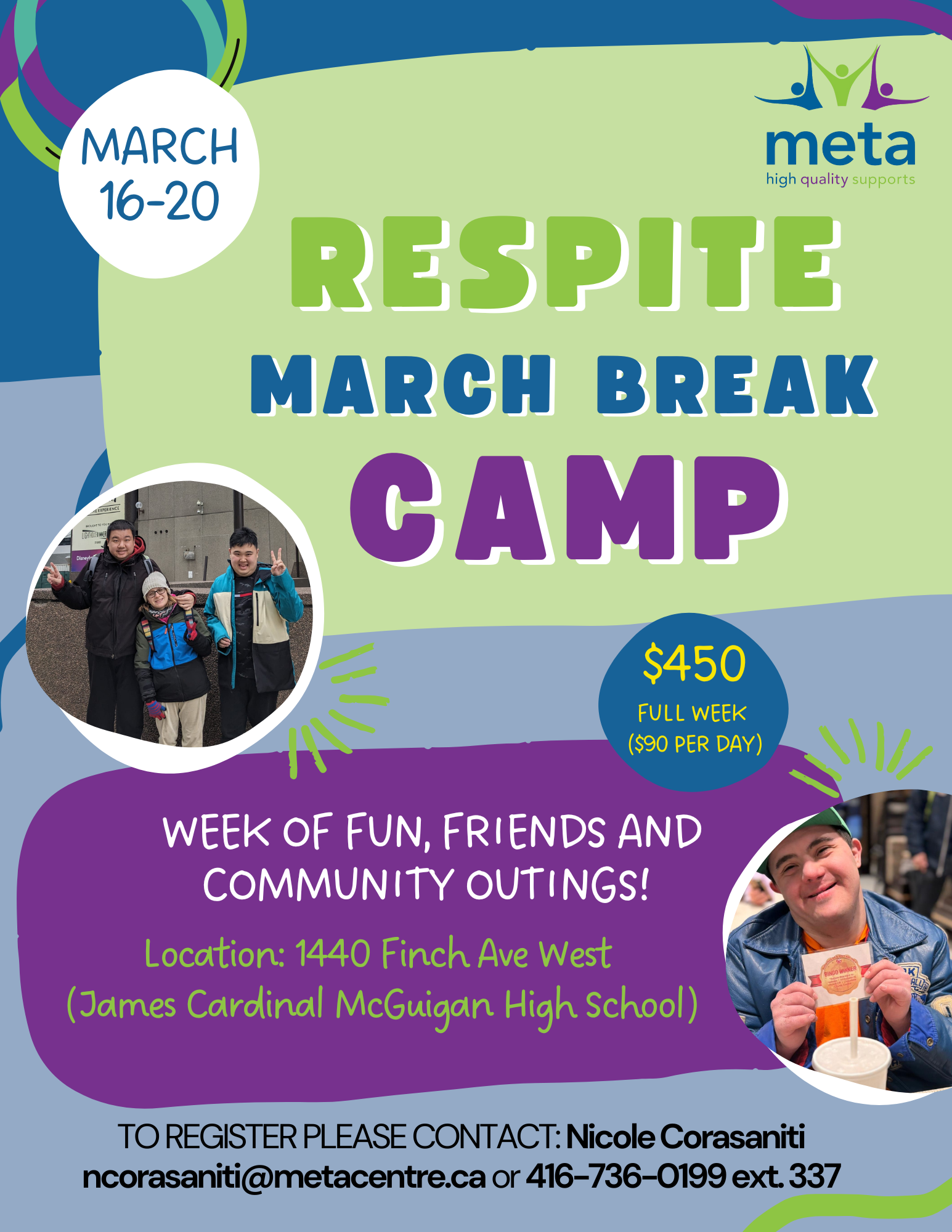 (please note payment is due first day of program (March 16th) to secure your son/daughters spot for the remainder of the week).