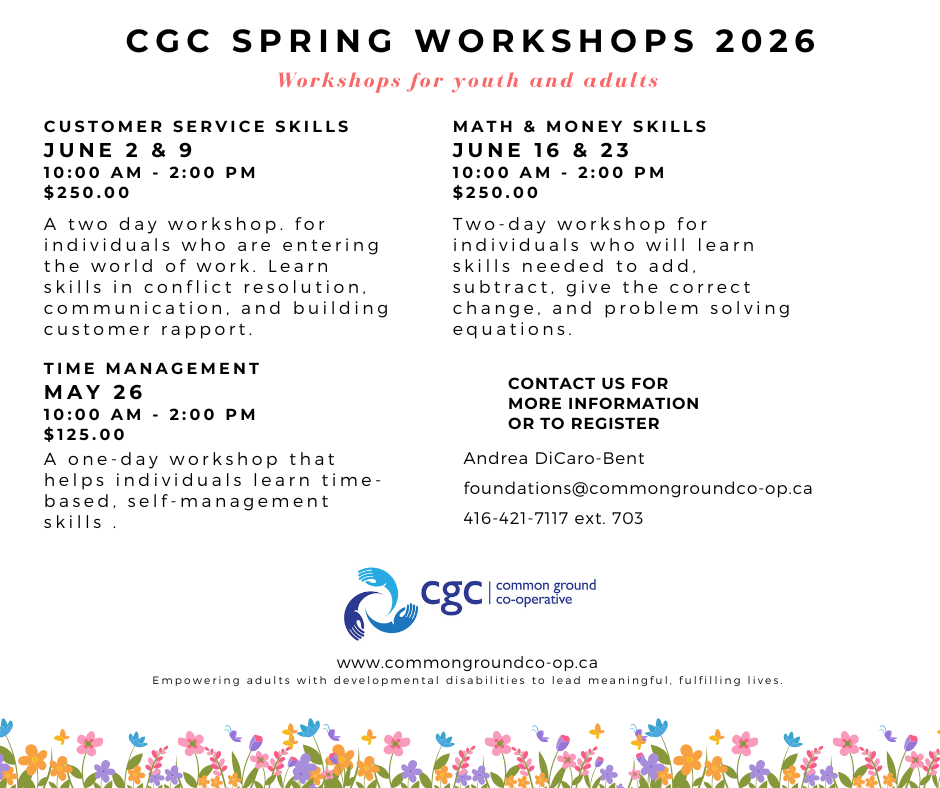 Common Ground Co-operative’s Spring Employment Skills & Financial Literacy Workshops.