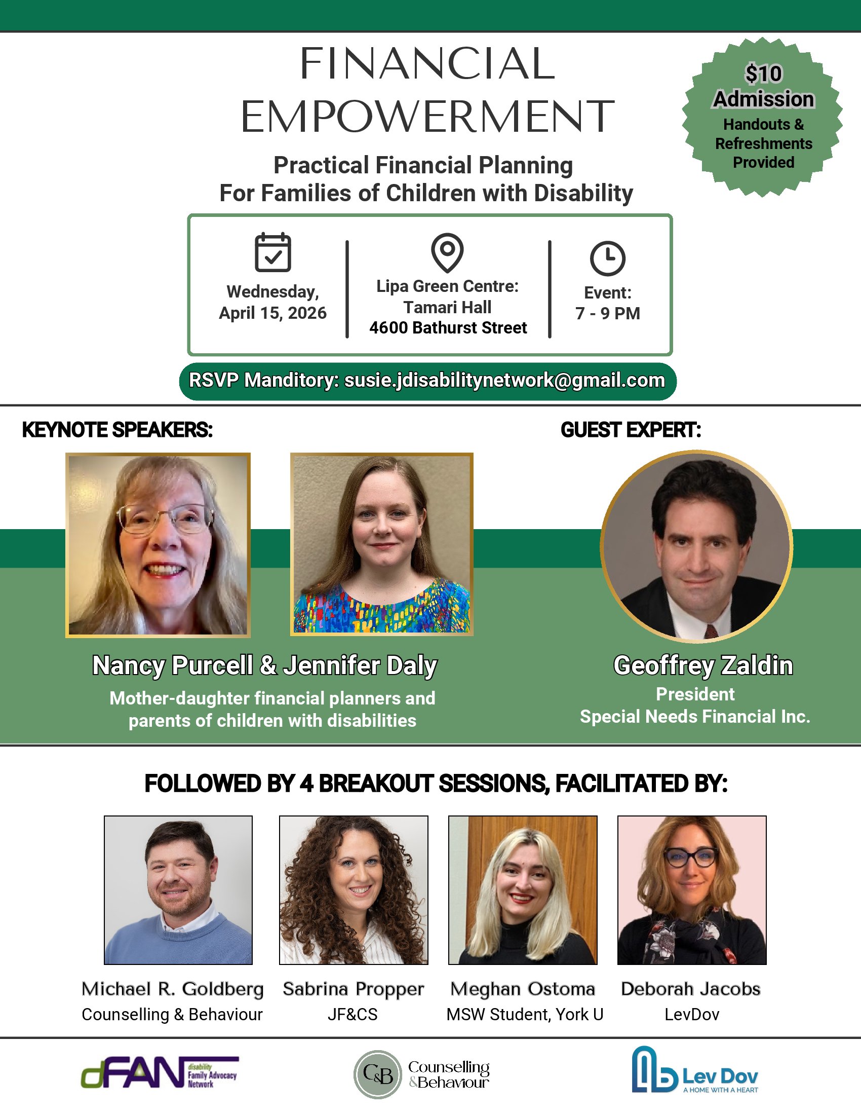 $10 admission  @ door; handouts, refreshments, limited number of free books; Safe and Secure,