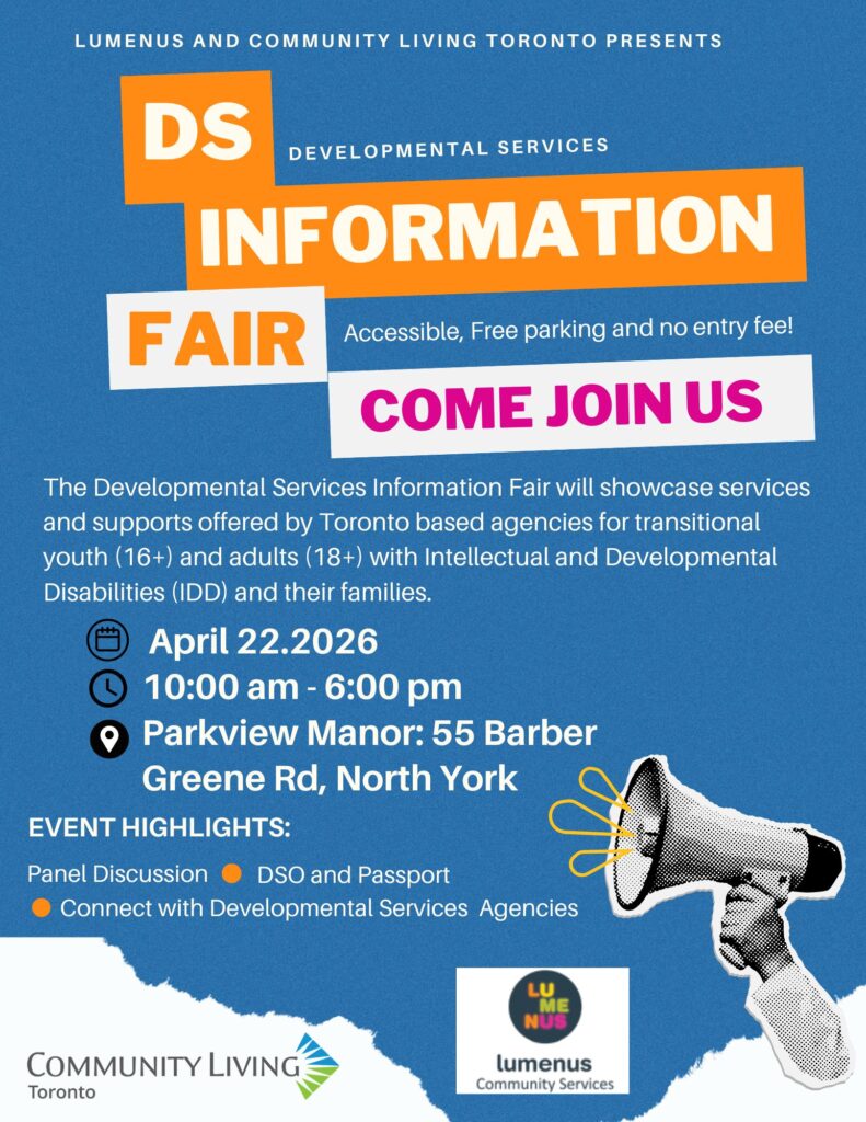 The Developmental Services Information Fair will showcase services and supports offered by Toronto based agencies for transitional youth (16+) and adults (18+) with Intellectual and Developmental Disabilities (IDD) and their families.