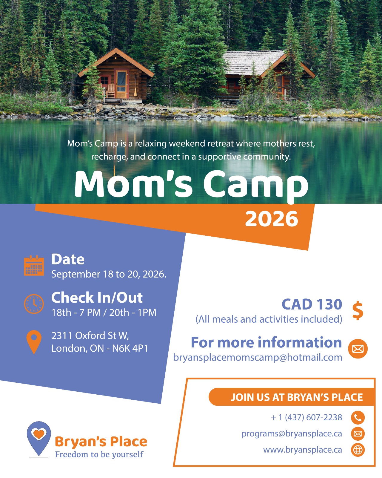 Mom’s Camp is a relaxing weekend retreat where mothers connect, recharge, and enjoy meaningful time together in a supportive community. – See flyer for more details